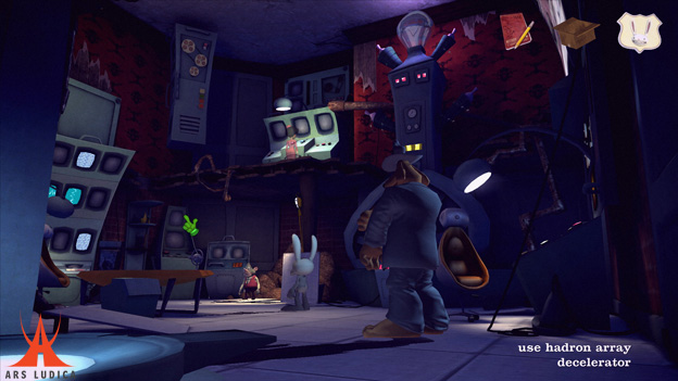 Altra novità di questa stagione è il sistema di controllo: niente più movimento diretto via mouse, bensì un’ulteriore evoluzione e affinamento di quello già visto in Tales of Monkey Island (che mi lasciò abbastanza perplesso). Controlliamo Sam con i tasti WASD muovendo il puntatore con il mouse, agendo su oggetti e personaggi cliccandoci sopra. E’ nuovamente presente la possibilità di far spostare i personaggi soltanto con il fido topo, trascinandolo tenendo il tasto sinistro premuto e funziona leggermente meglio che nelle avventure di Guybrush Threepwood. E’ pienamente supportato il joypad della Microsoft (lo stesso dell’Xbox360) e l’interfaccia (compreso l’inventario) è capace di adattarsi dinamicamente in base al sistema di controllo che utilizziamo senza neanche aprire un singolo menù, fico.