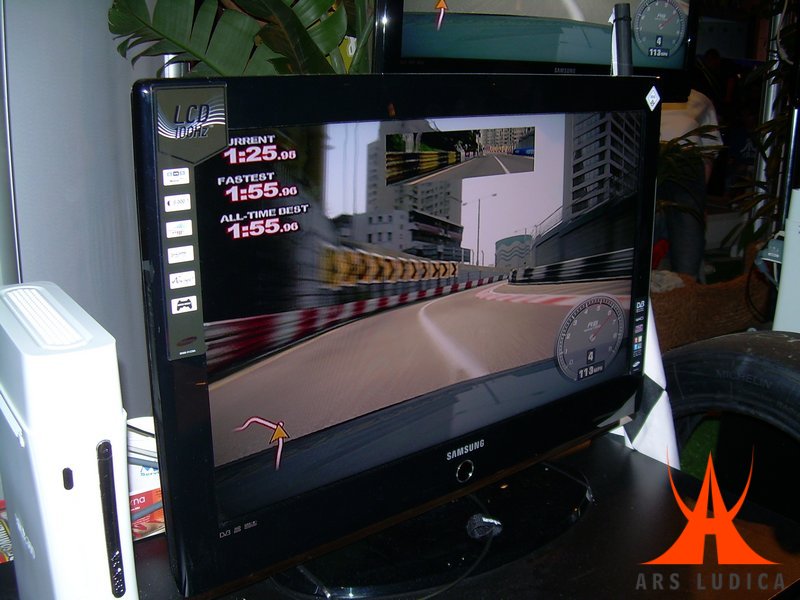 Che stanchezza, il ritmo di questi primi giorni mi ha steso letteralmente. Oggi ho visitato l’area Microsoft, con svariate postazioni di prova con giochi quali Project Gotham 4, FIFA 08, PES 2008, Sega Rally Revo, Viva Pinata: Party Animals, Blue Dragon e qualcos’altro di già uscito. PGR4, attesissimo racing arcade con dream cars (lo vedo un po’ come l’erede dei vecchi Test Drive e del primo Need For Speed), realizzato da Bizarre Creations era lì in tutto il suo splendore, in versione quasi ultimata con svariate vetture e moto da provare, in condizioni di gara diverse (e di clima, se vogliamo). Il feeling della serie è rimasto intatto, anche se continuo a dubitare di fronte alle gare miste, moto – macchine, trovandoli due mezzi quasi agli antipodi reciprocamente. La moto prende distanza in accelerazione perdendo poi tutto nelle curve più angolate, inoltre si rischia molto di più in quanto è possibile cadere in seguito a urti eccessivamente bruschi. Graficamente c’è poco da dire, è tutto più bello di PGR3 (che considero ancora il top della next gen graficamente, in ambito corse), modellazione delle vetture ancora più curata e fluidità costante (nuovamente a 30 fps), prima di ultimare la gara ha pure cominciato a piovere (quindi è vero che ci saranno variazioni meteorologiche in tempo reale), ma non sono riuscito a verificare quanto questo possa influire sulla tenuta di strada della moto/vettura. In ogni caso ormai manca poco, il gioco uscirà circa a metà ottobre. FIFA 08 l’ho visto giocare e graficamente (per X360) è davvero impressionante, ci avviciniamo sempre di più al foto realismo, ormai non sussistono quasi più scatti, in quanto le animazioni sono ben linkate tra loro. PES 2008, sotto questo aspetto, è ancora indietro di una generazione, ma a quanto pare anche questa versione sta avanti a FIFA, sotto il profilo della giocabilità.