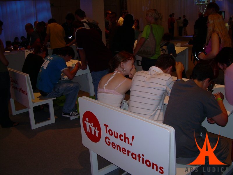 Lo stand Nintendo era abbastanza affollato (ho in seguito scoperto che il primo giorno, quello dedicato alla stampa e ai trade visitors, era per metà chiuso), con gente di tutte le età e sessi a provare i vari giochi e “non-giochi” presenti nella sua area che era così composta: Area Touch Generation, con giochi enigmistici quali i vari Brain Training et similia, area Wii/Mii dove potevi creare il tuo Mii e giocare a vari titoli come Brain Academy Wii, Wii Sports e altri e infine un soppalco con l’area Wii Fit, che non ho ancora provato. Comunque sono presenti anche applicazioni ludiche per questa curiosa pedana, spero di riuscire a testarne qualcuna oggi.