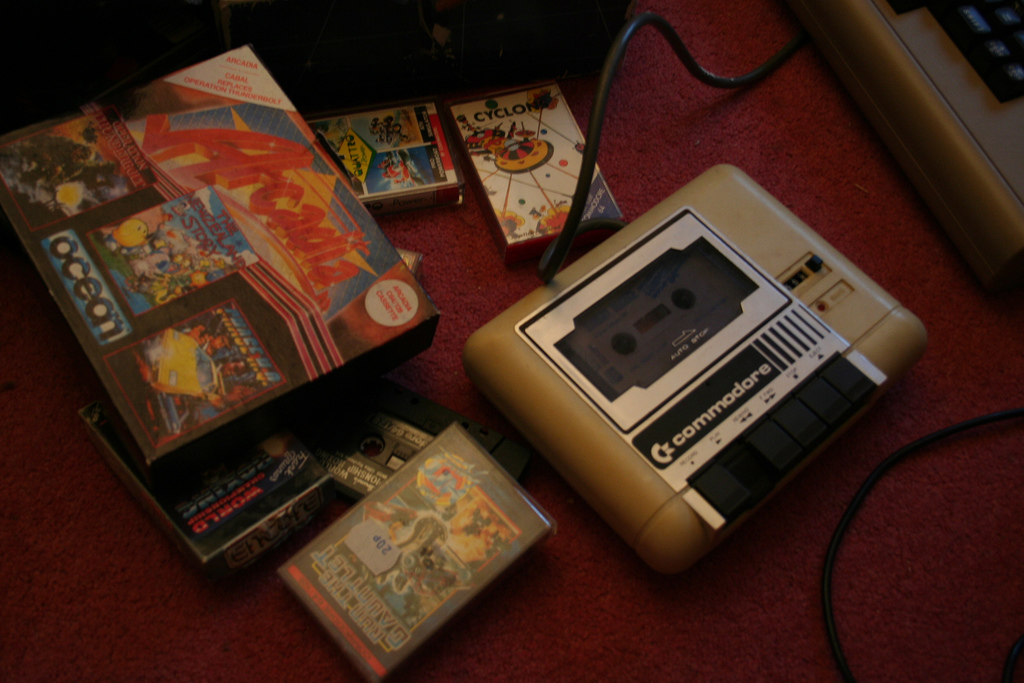 Post ingannevole! Mi sarei aspettato effetti madeleine a non finire e invece è la solita esposizione d’antiquariato, maledetto Karat! Mi ha mezzo punzecchiato il cuore la prima immagine (vicinissima alla mia postazione C64 dell’epoca!) ma andrebbe sostituito il lettore floppy col mangiacassette della terza foto (e annesso raccoglitore colmo di uscite da edicola). Perchè sappiamo tutti che i fighetti col floppy erano serie B rispetto a noi true believer delle cassettine. Però queste immagini mi hanno ricordato i due ultimissimi giochilli che acquistai per il Commodore: Golden Axe e The Blues Brothers, sic.
