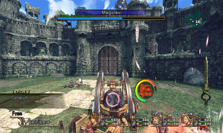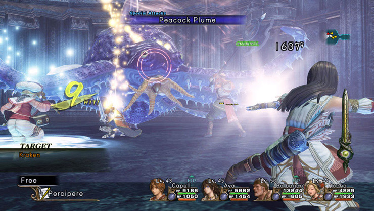 Questo è più o meno l’incipit dell’ultima fatica dei Tri-Ace, che non sfornavano un titolo nuovo dai tempi di Valkyrie Profile 2, e come nella tradizione della stessa software house, presenta similitudini con altri titoli sviluppati nel loro passato. Partiamo dal sistema di combattimento, in tempo reale e con un’impronta decisamente action (non tanto diverso da quello visto nei vari Star Ocean), ma soprattutto senza alcuna transizione tra esplorazione e fase di combattimento: al contrario di quella che è la moda dei JRPG tradizionali, in cui quando si incontra una creatura nemica durante la fase di esplorazione il proprio party viene “teletrasportato” in un’arena di combattimento, in questo caso quest’ultimo avviene direttamente nella fase stessa di esplorazione, come negli MMORPG o negli RPG di stampo occidentale. E’ un’impostazione già vista anche in Final Fantasy 12, ma che in Infinite Undiscovery si adatta molto meglio per via di un sistema di combattimento più immediato e meno pilotato. Oltre ad eseguire le solite combo di colpi, il buon Capell potrà anche sfruttare due colpi speciali sfruttando le abilità che andrà imparando man mano che si avanzerà di livello di esperienza. E il party? Il party c’è, tranquilli, ma non è direttamente controllabile. Quello che ci è concesso di fare è di impartire ordini ai nostri compagni, che vanno dal “fate quello che cazzo vi pare” al non sprecare mana, o a concentrarsi tutti su un singolo bersaglio, a fare combo, a sparpagliarsi se troppo vicini, o al rubare la collezione di parrucche e toupet di Joe Slap.