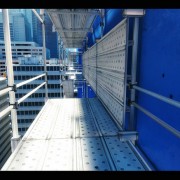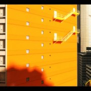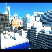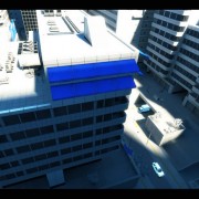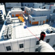 La città di Mirror’s Edge è nazismo applicato, Albert Speer non avrebbe saputo fare di meglio. L’unica forma di ribellione possibile è percorrerla come fosse una pista, de-funzionalizzandone gli elementi che la compongono. Tubi, reti, tetti, corridoi… tutto diventa percorso di una logica fluida che crea inconsistenza nel rapporto tra l’individuo e l’ambiente. La città è il medium. Non esistono luoghi, solo passaggi, questo sembra il tema portante del gioco. La dittatura è nei palazzi, nella pulizia, nell’uso dei colori primari, nel bianco della vernice che appare bruciato sullo schermo, nella sapienza della composizione scenica, nel silenzio di un ambiente vasto, spettacolare, ma sostanzialmente morto. Una città che sembra aver rinunciato ad essere specchio dell’umano beandosi e contorcendosi nell’intrinseca volontà di potenza racchiusa nelle forme nette e pulite che la disegnano.