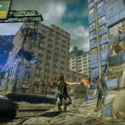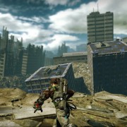 Il mondo di gioco stesso sottolinea questo disgregarsi di valori: non ci sono più basi nemiche organizzatissime e piene di soldati, ma una città distrutta in preda alle radiazioni, completamente spopolata, dove sia l’eroe che i nemici appaiono come anacronismi visivi e la loro lotta per il potere distante e aliena al contesto. Le macerie dominano su tutto. Lo spazio è solo la carcassa di una civiltà utopica che ha fallito e che oggi è oggetto di razzia.