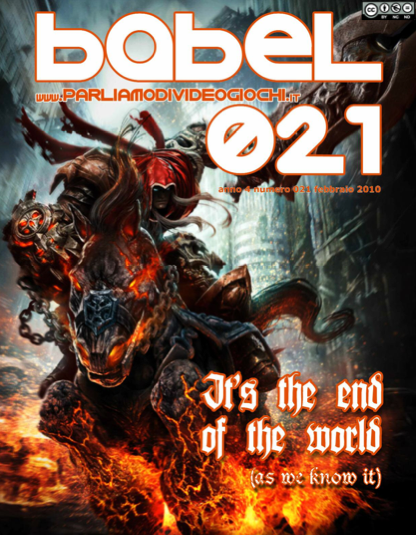 A che ora è la fine del mondo?, si chiedeva un perplesso Ligabue qualche anno fa, in fremente attesa del Terzo Festival del Dolore su Canale 9. Chisseneincula, rispondeva un offeso Michael Stipe, a cui tutto sommato l’apocalisse non stava nemmeno antipatica. E per un motivo ben preciso: come andrà lo sappiamo già, l’ha scritta un tizio barbuto (non Dritzzt Do’Urden, un altro) molti anni fa su delle pergamene di capra. Nonostante questo, è un argomento che non ci annoia mai. Succede lo stesso con i giochi? Roba che abbiamo già visto, trita e ritrita, con le stesse meccaniche, texture e perfino gli stessi marroncini e space marine e futuri distopici e mondi fantasy con nanielfigoblindraghi. Ok, roba a cui siamo abituati, ma per forza insopportabile? Svelate questo e altri misteri nel numero 021 di Babel, l’unica rivista con la faccia tosta di mettere cavalli che scoreggiano fuoco in copertina.