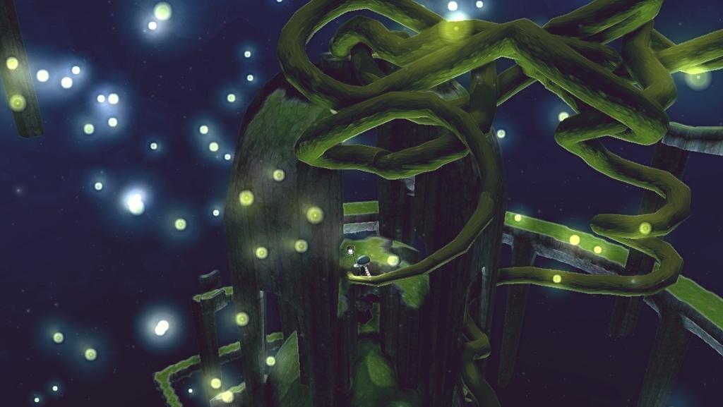 per il resto vado in giro, accendo torce, vado in giro, accendo torce, vado in giro, ogni tanto qualche piattaforma prende il volo o l’illuminazione cambia ma la cosa è troppo inutile per incuriosirmi un pò. poi vado in giro ed accendo torce. il gioco è pure programmato male, la telecamera è indomabile e si va sempre a piazzare sotto i piedi del personaggio. alla fine mi rompo e punto dritto alla luna. fine. tenendo premuto un tasto ho realizzato il sogno della mia vita e come premio posso girare in eterno su una palla vuota e inutile.