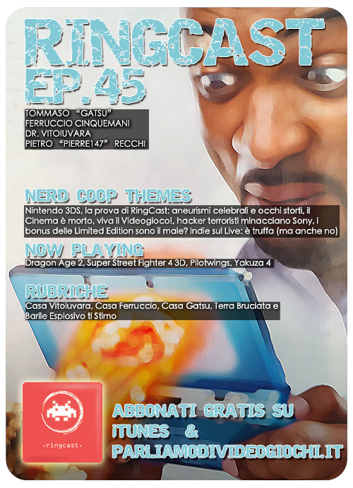 C’è qualcosa di orribilmente sbagliato quando alla stazione vedi un quarantenne con la barba che gioca con un Nintendo DS rosa mentre aspetta il treno. Ma di certo i vostri amici di RingCast non sono da meno, visto che sia Ferruccio che il nostro rutilante ospite Pierre147 sono uomini ormai sull’orlo della pensione, che imperterriti si comprano console da prima elementare. Ma noi siamo fatti così, che ci volete fare. In questo secondo esperimento “rawdog” (Google > Urban Dictionary) si parla di molte cose belle.