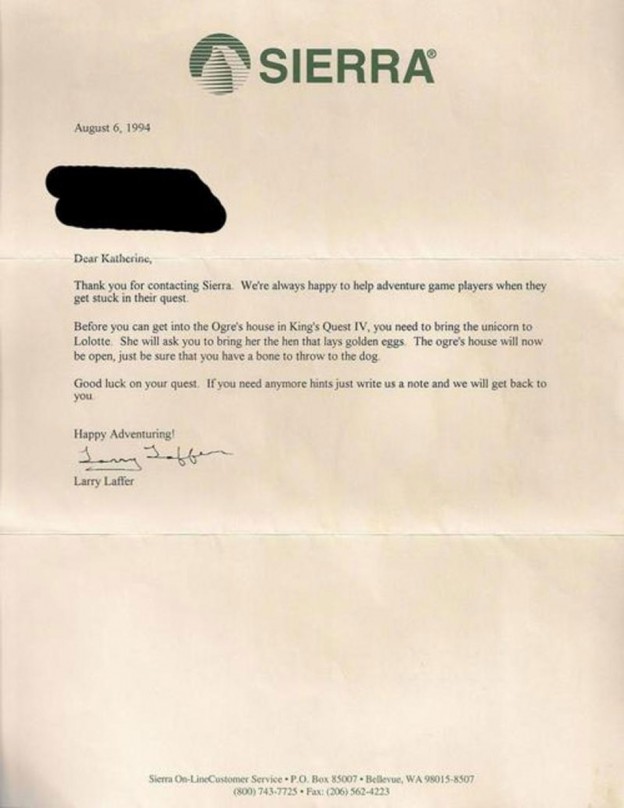 La vera finezza è che a rispondere c’è Larry Laffer, e che la destinataria è un’esponente del gentil sesso… chissà se la corrispondenza è andata avanti? 😛