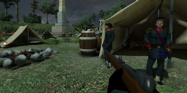Vedete i nemici che vi sparano? Sono dei fake senza IA (non hanno fatto in tempo a implementarla perché dovevano curare la ricostruzione storica), quindi non preoccupatevene, tanto non possono uccidervi nemmeno se gli ballate nudi davanti. Superateli e passate il cancello sulla destra, quindi passate un altro cancello sulla destra e, infine, uno sulla sinistra.