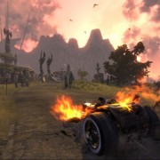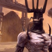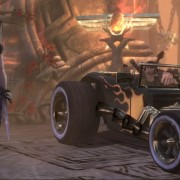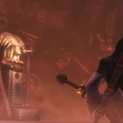 Mi rendo conto sinora di aver scritto sino a questo momento più un panegirico che una recensione, decantando solo le virtù del videogioco. In realtà, le note dolenti provengono dal gameplay, non malvagio ma affetto da una sindrome che lo rende ripetitivo nonostante i lodevoli tentativi di Schafer e soci di costruire un titolo vario prendendo in prestito schemi di gioco eterogenei. Il free roaming a bordo del Bolide è piacevole, così come metter sotto quei dannati caproni sempre in posa plastica, ma se le side quest e la raccolta di tributi di fuoco consistono sempre nelle stesse azioni (preparare agguati, correre da un punto A a un punto B, dissotterrare reliquie e liberare serpenti di fuoco suonando una nota con la nostra amata chitarra Clementine), ecco che tutto si riduce ad accumulare crediti da spendere nel Forgiamotori, dove il Guardiano del Metal (Ozzy Osbourne) sblocca potenziamenti assortiti. Gli elementi mutuati dagli RTS, invece, sono veramente pochi, e non permettono l’elaborazione di vere e proprie strategie, visto che Eddie deve trovarsi vicino alle truppe per poter dare gli ordini (e i campi di battaglia spesso sono veramente grandi). Anche i frangenti di combattimento corpo a corpo, seppur divertenti, non riescono certo a replicare la completezza di un God of War qualsiasi: gli attacchi a disposizione sono sostanzialmente due, a distanza ravvicinata tramite ascia e da lontano tramite chitarra elettrica. La chitarra, strumento principe del rock, svolge anche qui un ruolo di primaria importanza: tramite un sorta di gioco musicale alla stessa stregua di Rock Band, ovvero premendo i pulsanti del pad giusti al tempo giusto, si possono evocare reliquie, radunare eserciti, sciogliere le facce dei nemici ed evocare enormi dirigibili in fiamme che vanno a schiantarsi sul campo di battaglia (!).