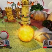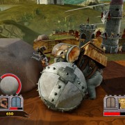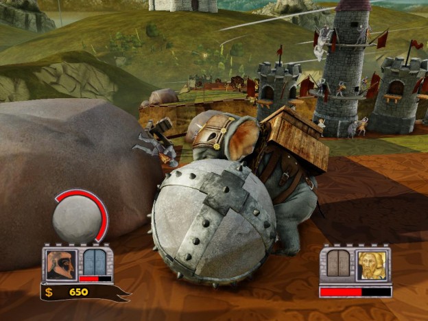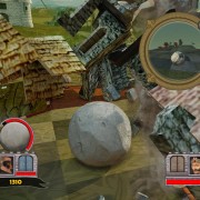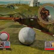 In cosa consiste il gioco? Bisogna far rotolare il masso lungo un percorso alla cui estremità si trova la roccaforte del nemico. Lo scopo è di sfondarne il portone per sfrangere il proprietario, così da passare alla mappa seguente. Ovviamente il nemico tenterà di fare lo stesso con noi, inscenando una lotta contro il tempo fatta di trappole piazzate (catapulte, animali, dirigibili, ventagli e così via), gestibili nelle fasi intermedie tra gli schianti (un solo masso non basta per sfondare un portone), e di risorse da raccogliere sotto forma di infrastrutture spaccate e esseri viventi uccisi (si trasformano in moneta sonante), utili per acquistare i gingilli di cui sopra. Non mancano potenziamenti per il masso, che ad esempio può essere ricoperto di una scorza più resistente, oppure avvolto dal catrame, utile quest’ultimo per contaminare le aree dove l’avversario potrebbe piazzare i suoi ostacoli.