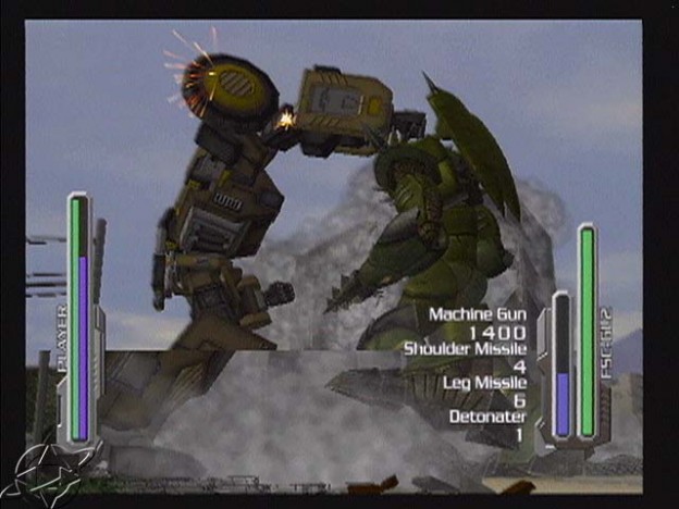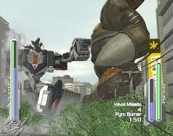 Veniamo ai controlli, ché lo so che volete sapere come si guida il robottone. Prestate attenzione, perché sembra difficile ma è meno complesso di come appare: il nostro bel Meganite muoverà la gamba destra con i tasti R1 (avanti) e R2 (indietro) e la sinistra con L1 e L2. Anche il giocatore medio di Halo può capire che sarà sufficiente premere ritmicamente R1 e L1 per andare avanti e R2 e L2 per andare indietro. Le curve ve le lascio per esercizio a casa. Il controllo delle braccia è affidato ai due stick analogici: spingerli in avanti fa estendere il braccio corrispondente (e tirare un pugno da femminuccia), fare delle mezzelune produce dei ganci laterali (esterni ed interni) mentre caricare all’indietro per poi estendere in avanti le braccia provoca dei devastanti diretti. Ci sono poi mosse più complesse, tutte introdotte e spiegate nel corso del gioco. Siccome parliamo di super-robot ogni Meganite ha anche un super attacco che può realizzare solo quando la sua energia è quasi al massimo, e Vavel ha persino una modalità berserk che lo condanna al sovraccarico irreversibile con esplosione al seguito se non riesce a sconfiggere l’avversario entro tre minuti. Siccome siete persone serie vi starete ponendo una domanda: ma perché Vavel può spegnersi invece di esplodere dopo che ha sconfitto un nemico? La risposta è che qui abbiamo a che fare con la fisica dei robottoni, mica con roba da ingegneri con le pennette tipo Armored Core. Probabilmente il fottuto scienziato sa come spegnere il Meganite ma non vuole dircelo così da spingerci a sviluppare tutto il nostro potenziale segreto.