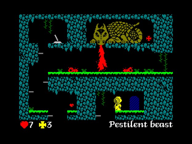 La risposta è semplice: per far capire che basta poco per essere più profondi di un Medal of Honor qualsiasi, anche con una grafica che fa il verso a quella dello Zx Spectrum. Altri giochi lo avevano già dimostrato, ma L’Abbaye des morts lo ribadisce con successo. Il gameplay è quello tipico dei platform per computer a 8 bit, e propone una serie di stanze di cui risolvere gli enigmi per arrivare a raccogliere tutte le croci. In alcune di esse si trovano delle pergamene che contengono degli indizi su come raggiungere delle piattaforme che sembrano inarrivabili. Giocare è molto semplice, visto che basta usare le frecce direzionali per muovere il protagonista e non serve altro. Finire il gioco, pur molto breve, richiede invece una certa dedizione e un buon tempismo nel compiere i salti, l’unica arma a disposizione del giocatore per combattere contro le forze del male.